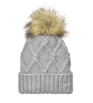 Totally on-trend, this ladies beanie has a thick ribbed cuff and a cable knit crown that¿s topped off by a fun faux fur pom.